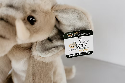The toy measures 30cm x 20cm x 20cm and can sit by itself or stand on all fours. Each toy is tagged with a WRSA Foundation Tag.