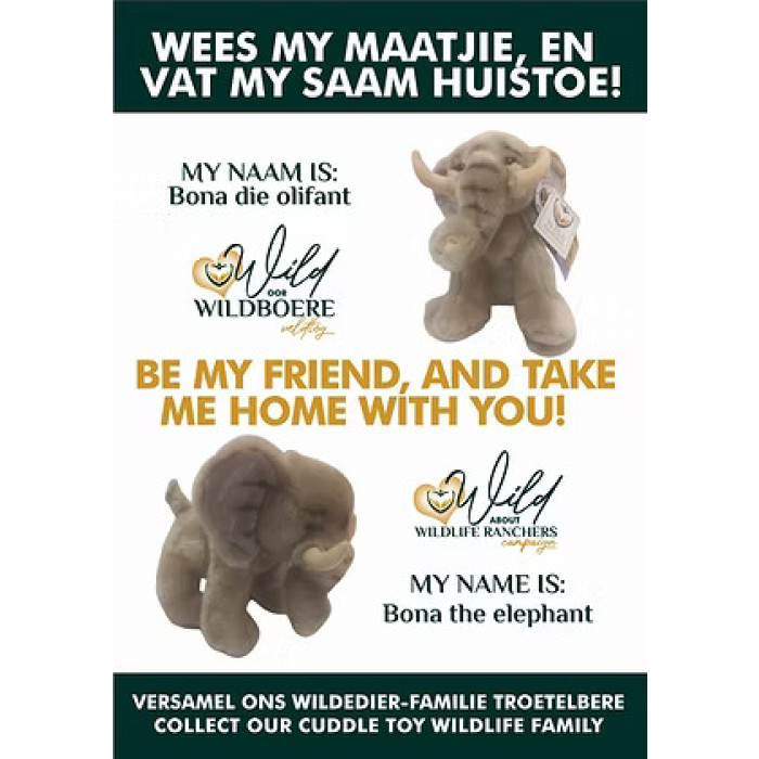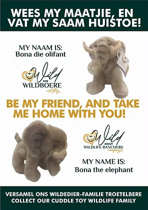Buwiri the Elephant is a plush toy stitched with love locally from excellent quality materials. It is filled with super soft and clean fiber made from recycled plastic bottles collected from our local communities in South Africa.